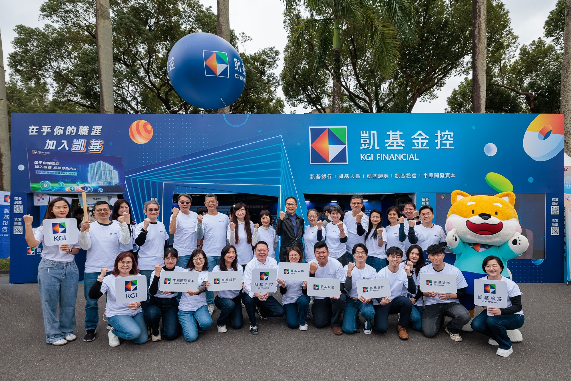凱基金控今(7)日參與「VISION 2026臺大校園徵才博覽會」,以「在乎你的職涯,成就你的未來」為主軸展開招募行動。董事長王銘陽率領子公司高階主管及人資團隊到場,在椰林大道與學生近距離交流,介紹集團人才培育與職涯發展機制,展現金融業積極延攬新世代跨域人才、布局未來競爭力的企圖心。
