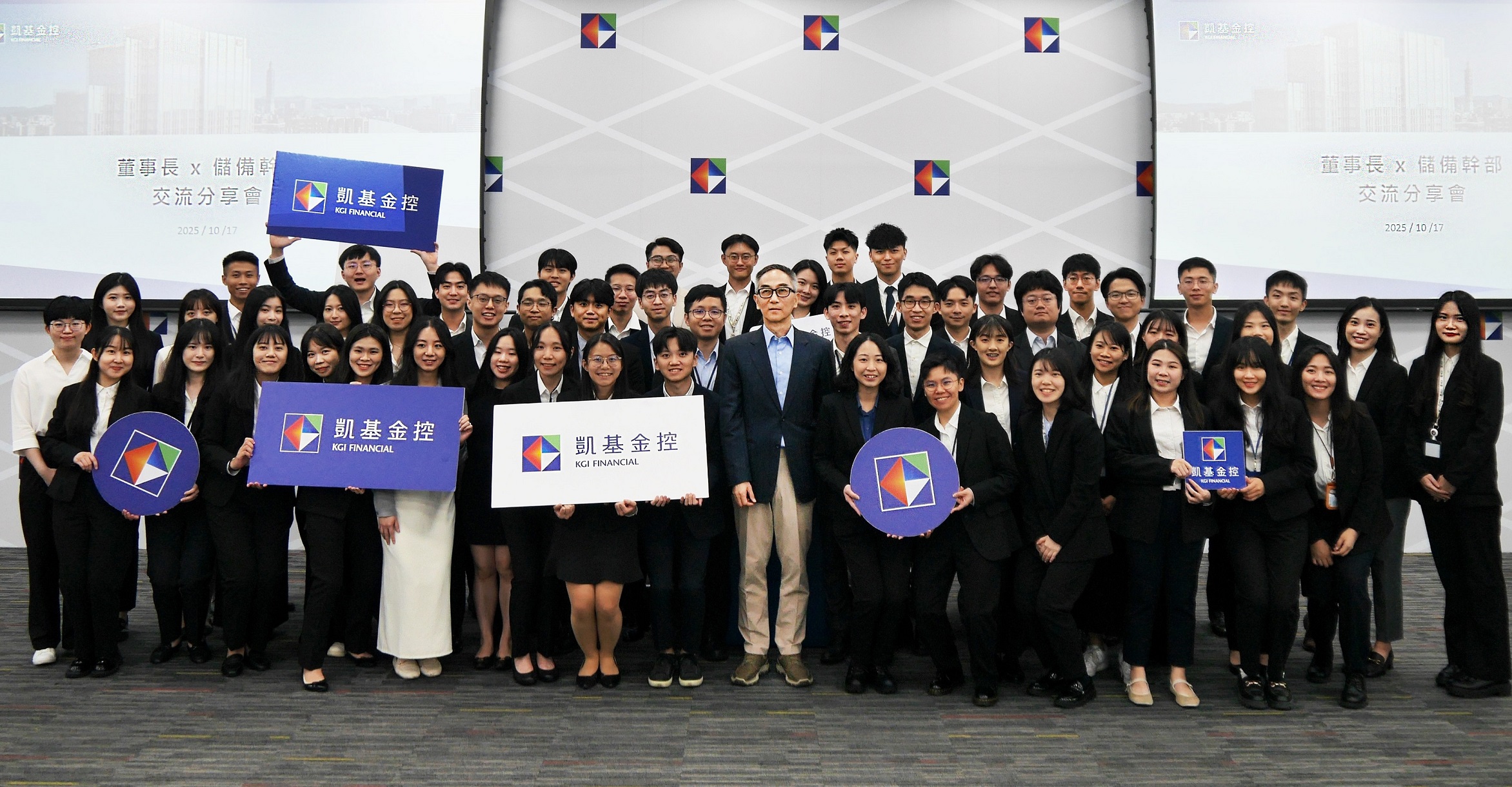 凱基金控董事長王銘陽表示,金融市場瞬息萬變,唯有具備抗壓力與建立被信任的領導力,才能帶領團隊前行。他更以自身的成長故事和求學歷程為例,期勉年輕同仁要勇於接受挑戰,不要害怕挫折與困難。他還提醒大家要在歷練中培養韌性與團隊精神,並以宏觀角度思考問題,同時在實務中鍛鍊問題解決能力,才有機會贏得同儕與客戶的信任,為未來職涯奠定穩健基礎。