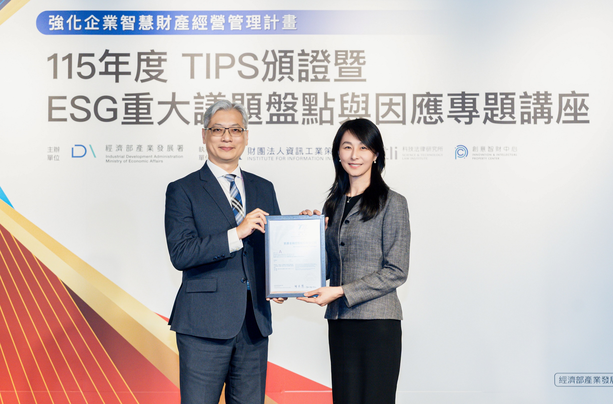 凱基金控展現品牌治理實力,於今(3)日獲經濟部產業發展署頒發「台灣智慧財產管理制度(TIPS)」A級驗證,這也是凱基金控連續第三次通過認證,顯示在數位轉型浪潮中,凱基金控已建構出一套接軌國際、結合數位創新與資產防禦的穩健體系,為企業永續競爭力建立長期優勢。